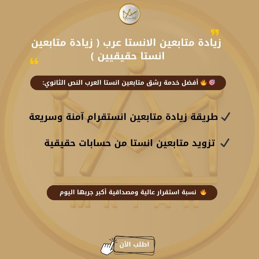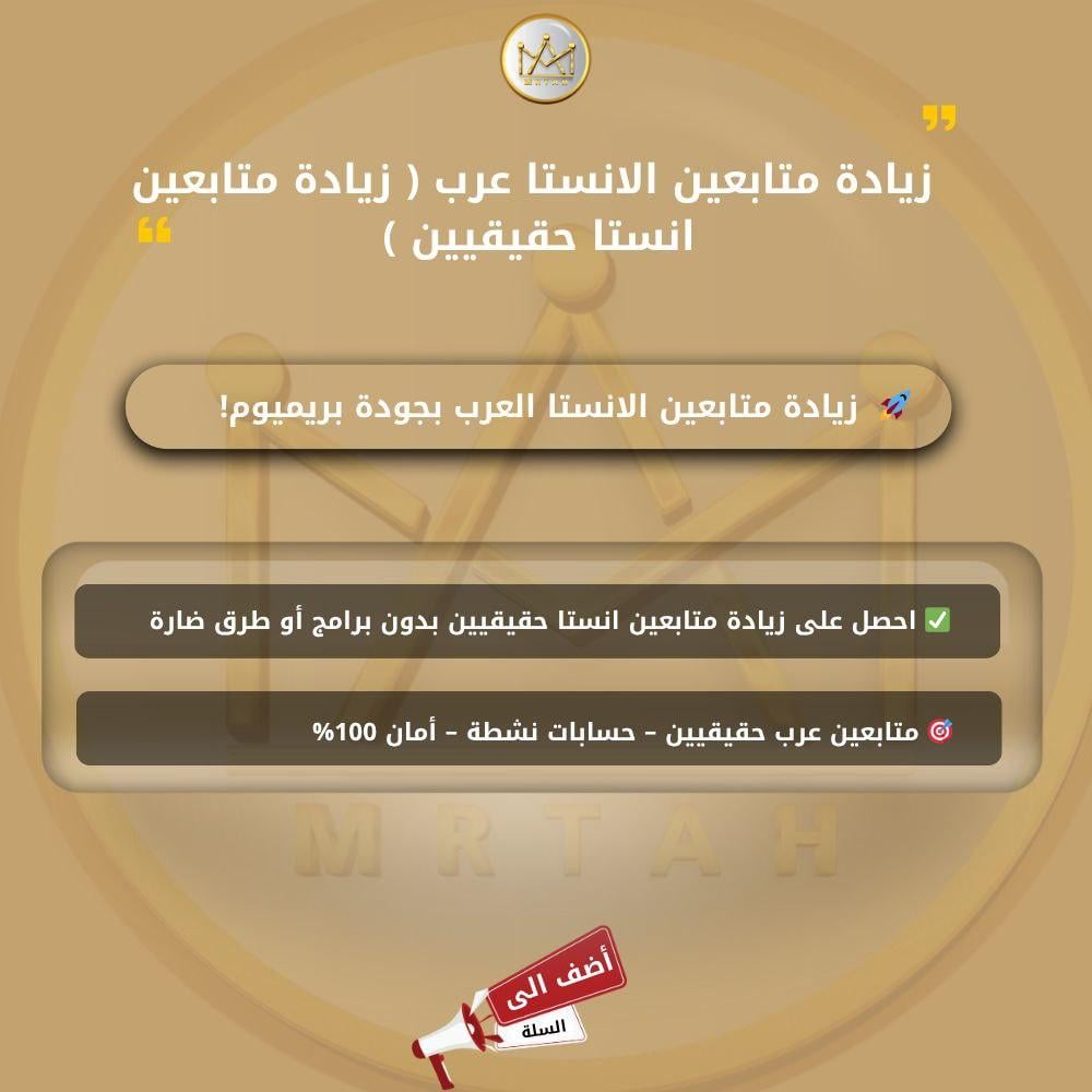 هل تبحث عن طريقة آمنة وفعالة لـ زيادة متابعين الانستا العرب؟ نقدم لك خدمة احترافية للحصول على متابعين عرب حقيقيين بجودة بريميوم وبدون استخدام أي برامج أو طرق ضارة لحسابك. يتم رشق متابعين انستا عرب لحسابك وهم ناس حقيقيين ويملكون بوستات، مما يعزز من مصداقيتك على المنصة. نضمن لك تجربة آمنة، سريعة، وبدون الحاجة لكلمة المرور.