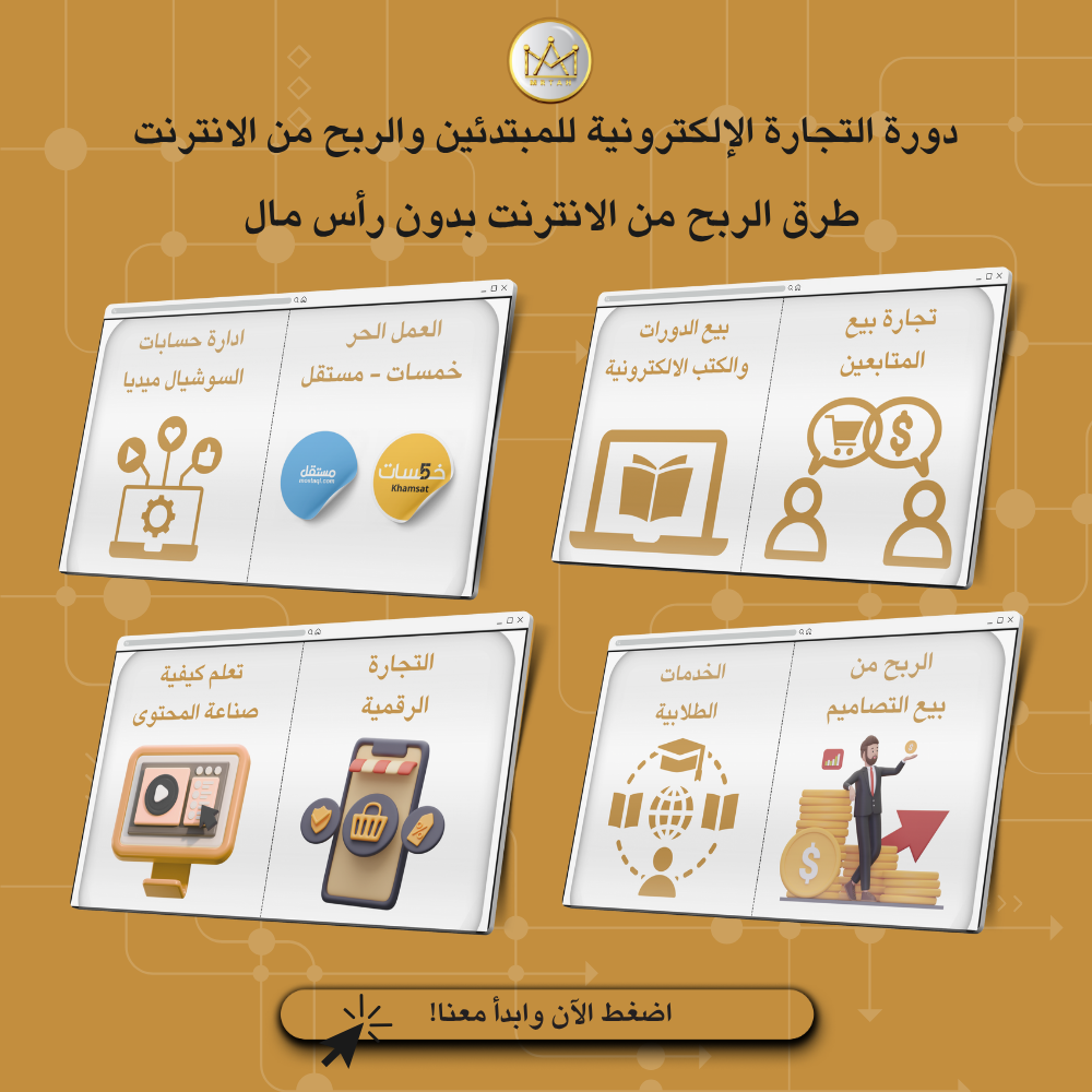 دورة التجارة الإلكترونية للمبتدئين والربح من الانترنت هي تجربة متكاملة تبدأ بك من الصفر وحتى تحقيق الأرباح العالية بإذن الله.